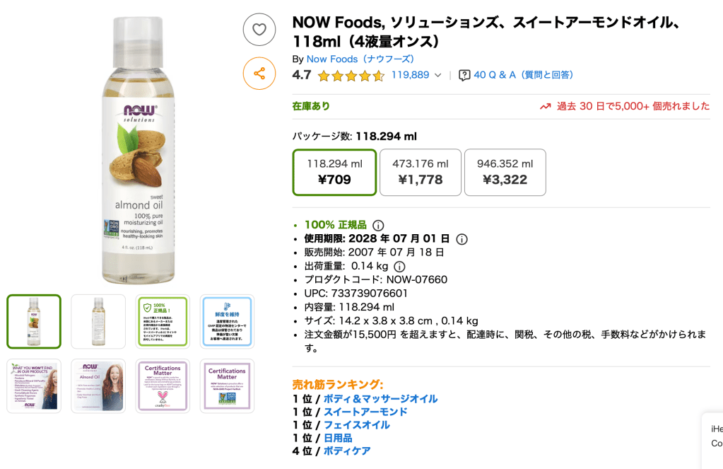 本当に驚いたので今日はアーモンドオイルについて皆さんにシェアします。