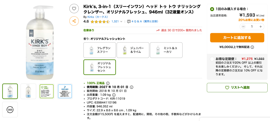 カークス(Kirk’s)スリーインワン(3-in-1)シャンプーの使い心地
